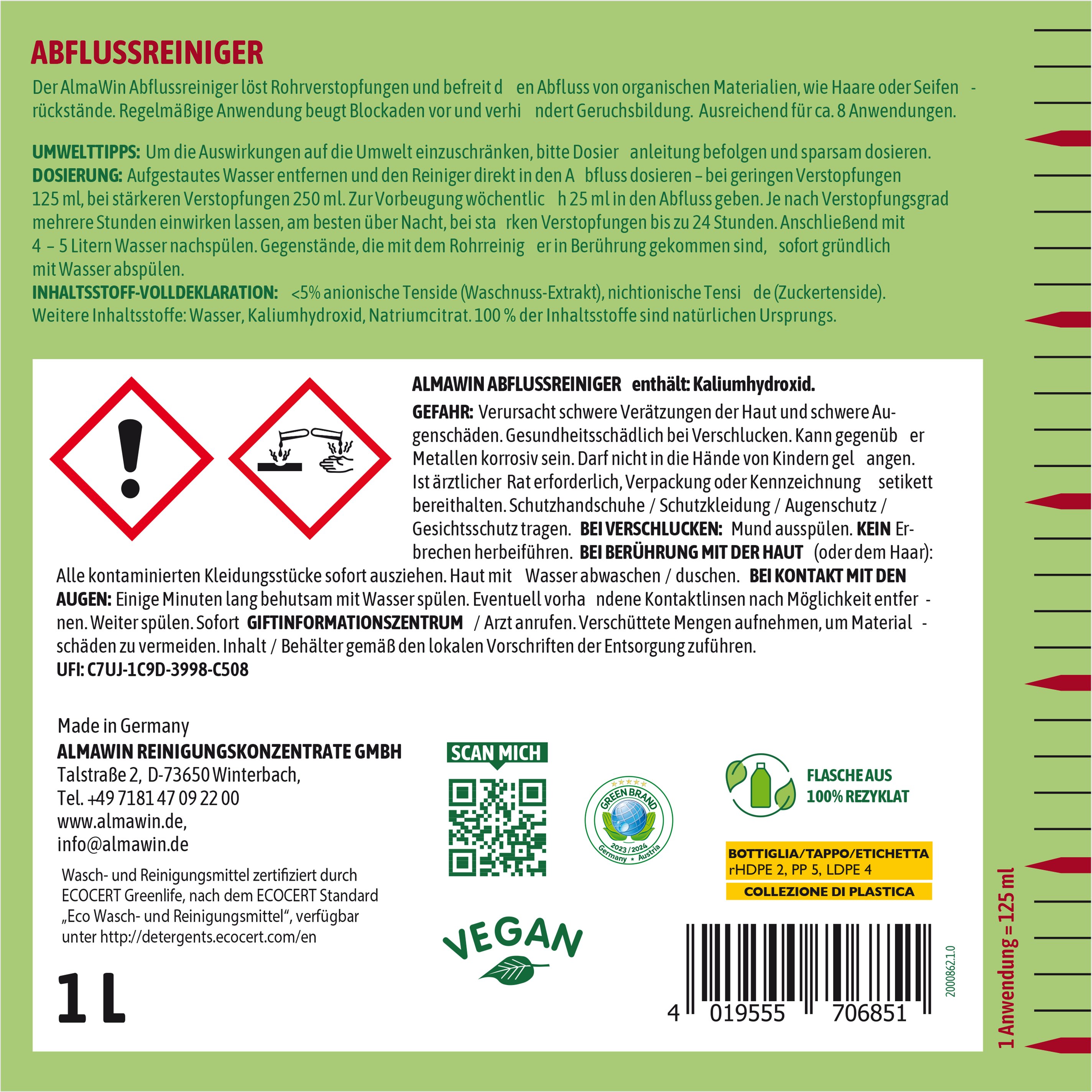 | Hersteller: | AlmaWin Reinigungskonzentrate GmbH, Talstraße 2, 73650, Winterbach, Deutschland, info@almawin.de, www.almawin.de |