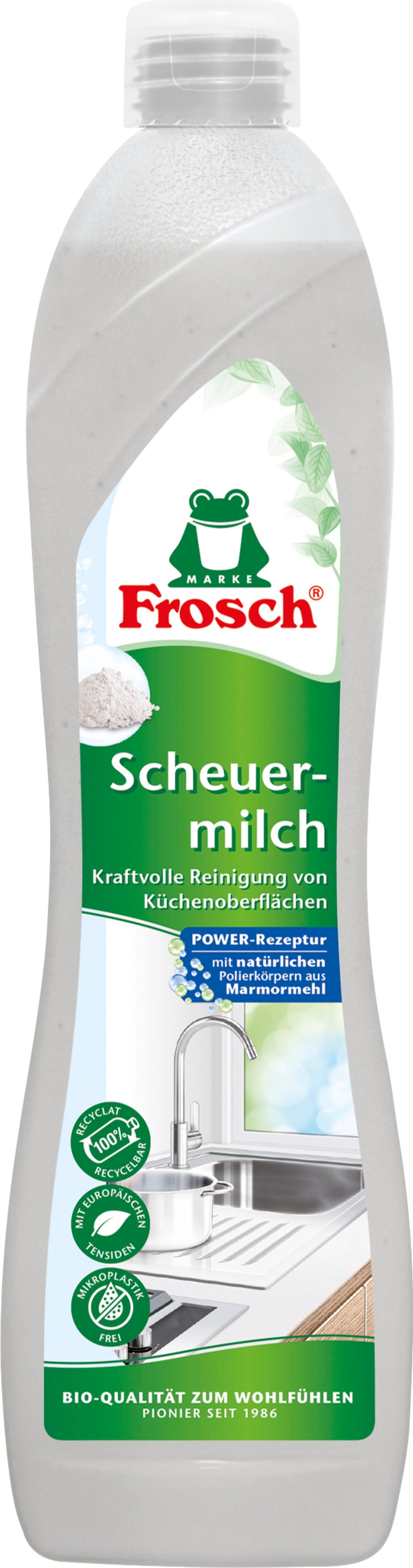 Mit der Frosch Scheuermilch bringst du mühelos neuen Glanz in deine Küche und dein Badezimmer! Du nutzt hierbei die natürliche Kraft von feinem Marmormehl, das deine Oberflächen mechanisch beim Polieren unterstützt und Verschmutzungen auf Edelstahl, Emaille oder Glaskeramik sanft, aber bestimmt entfernt.