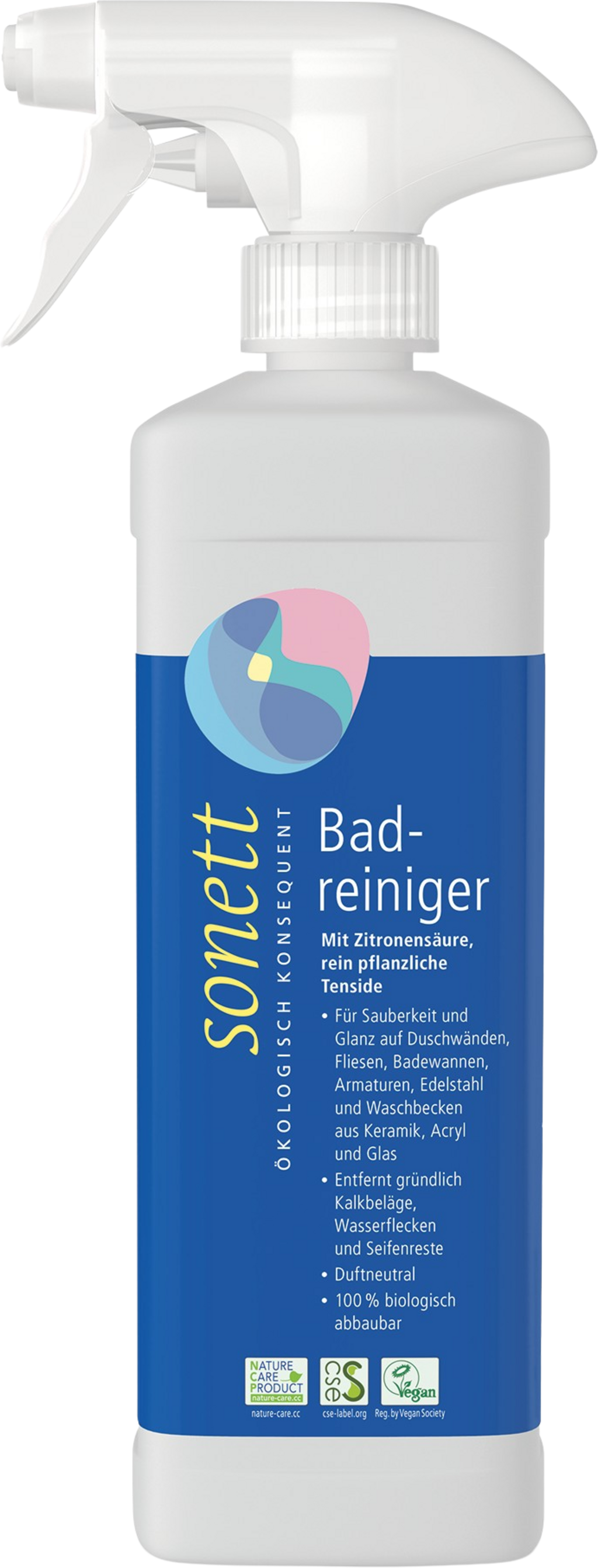 Der Badreiniger von Sonett ist einfach anzuwenden, sorgt für gründliche Sauberkeit im gesamten Sanitärbereich und eignet sich besonders gut für die Bereiche, in denen kalkhaltige sowie fettige Ablagerungen zu finden sind.